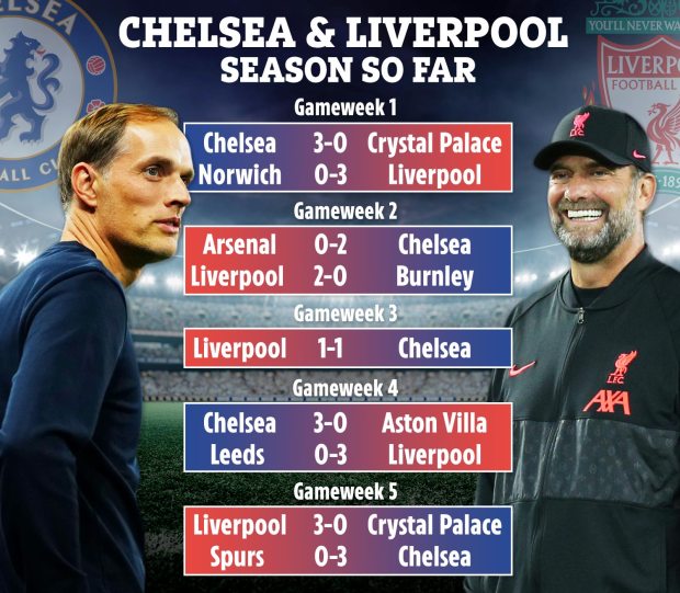 Cụ thể, nếu như Chelsea thắng Tottenham 3-0 ở vòng 5 hôm Chủ nhật, thì trước đó Liverpool cũng dễ dàng hạ gục Crystal Palace 3-0 trên sân nhà ngày thứ Bảy. Ở các vòng 1, 2 và 4, hai đội cũng thu về những chiến thắng có tỷ số y hệt.