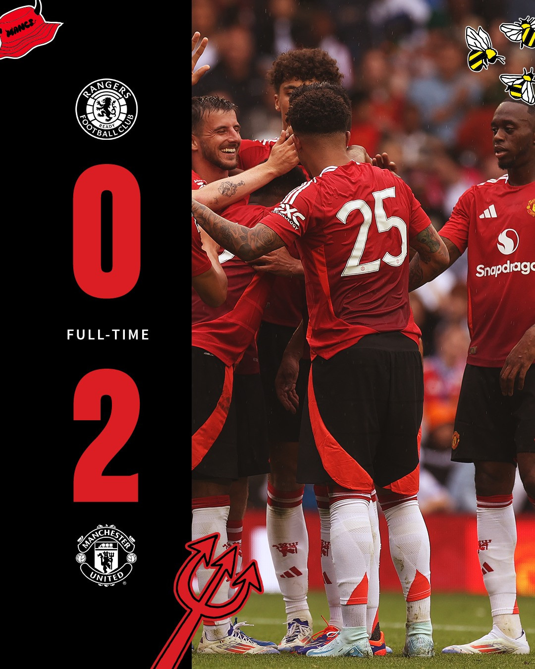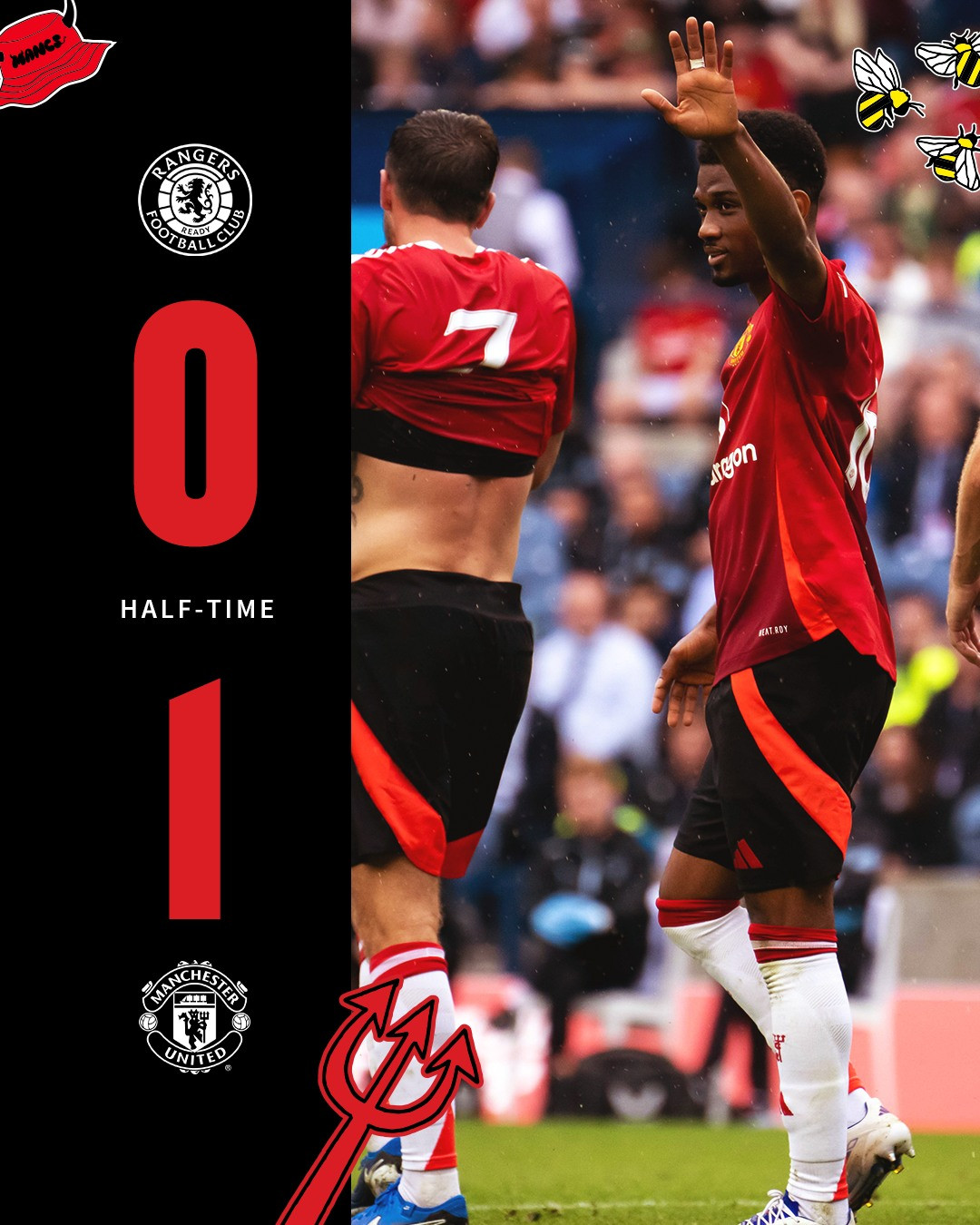 Tân binh Leny Yoro có trận đấu ra mắt ít ngày sau khi gia nhập MU, Quỷ đỏ thành Manchester có chiến thắng nhẹ nhàng 2-0 trước Rangers, thuộc khuôn khổ giao hữu hè 2024.