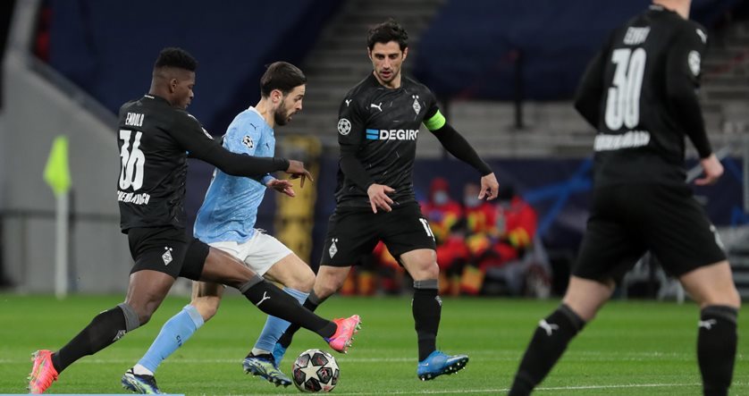 Trong hiệp một, Monchengladbach chỉ có được hai cơ hội đáng kể. Phút 32, Thuram nhận bóng bên cánh trái, xử lý một nhịp rồi dứt điểm vòng cung khá đẹp nhưng Ederson bắt gọn trái bóng. Tình huống sau đó ở phút 41, cú sút về góc xa của Embolo khiến thủ môn Ederson đã chôn chân đứng nhìn nhưng Ederson bóng đi chệch cột dọc trong gang tấc.