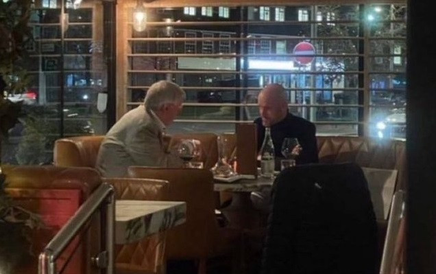 Người hâm mộ MU đang ‘sốt rần rần’ với hình ảnh xuất hiện trên mạng xã hội –HLV Erik ten Hag được phát hiện cùng Sir Alex dùng tối ở một nhà hàng, với ly rượu vang bên cạnh.
