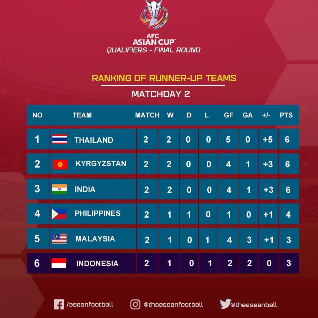 Với 6 điểm cùng hiệu số +5, Thái Lan đã chạm 1 tay vào tấm vé dự VCK Asian Cup 2023. Ở lượt cuối ngày 14/6, Thái Lan gặp chủ nhà Uzbekistan để phân định ngôi đầu bảng C.