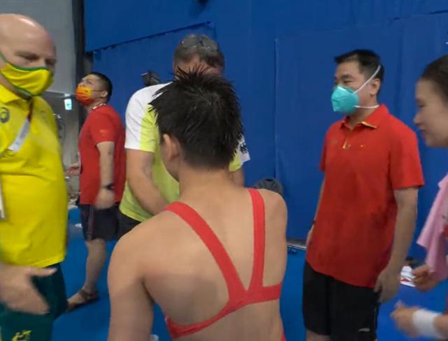 Ngay sau khi Quan Hongchan kết thúc phần thi, vị HLV người Australia đã tiến tới rồi chủ động bắt tay chúc mừng VĐV Trung Quốc. Thế nhưng, phải đến lần đề nghị thứ ba, HLV này mới thành công do lúc đó có nhiều HLV và VĐV người Trung Quốc đang vây quanh để chúc mừng Quan Hongchan.