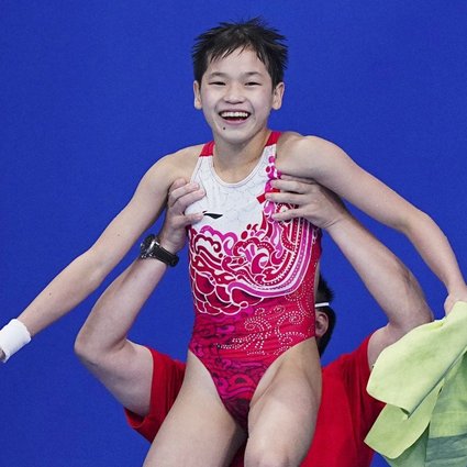 Quan Hongchan là VĐV sinh năm 2007, trẻ nhất đoàn thể thao Trung Quốc tại Olympic Tokyo. VĐV này mới chỉ cao 1m43 và có vóc dáng của một đứa trẻ nhưng màn trình diễn của cô lại khiến cả Olympic phải kinh ngạc.