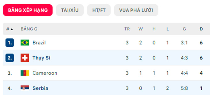 03/12/2022 12:41Thắng nghẹt thở Serbia, Thụy Sỹ theo chân Brazil đi tiếp