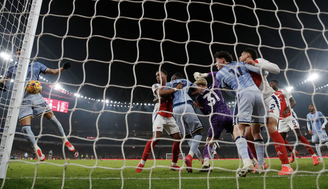 Bị dẫn bàn, Arsenal buộc phải gia tăng sức ép và hiệu quả đến như mong đợi. Phút 40, Gabriel Magalhaes gỡ hòa 1-1 cho "Pháo thủ" cũng bằng một pha đánh đầu cận thành sau pha đá phạt góc của Declan Rice.