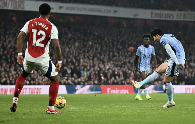 Gây sức ép và tấn công phủ đầu nhưng Arsenal lại là đội bị thủng lưới trước, ngay ở pha dàn xếp tấn công đầu tiên của Tottenham. Phút 25, ở tình huống đá phạt góc bên cánh phải, Son Heung-min đón lõng bóng được phá ra và tung ngay cú dứt điểm hiểm hóc, đánh bại thủ môn David Raya.
