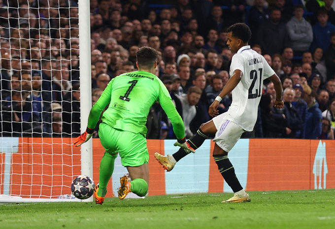 Bước sang hiệp 2, Chelsea vẫn là đội chủ động nắm thế trận trong khi Real sẵn sàng cho các pha phản công. Và cuối cùng điều gì phải đến cũng đã đến. Phút 58, Rodrygo dùng tốc độ để vượt qua Chalobah trước khi căng ngang vào trong. Bóng bật ra đến chân của Vinicius và cầu thủ này bình tĩnh chuyền cho Rodrygo dứt điểm cận thành mở tỷ số.