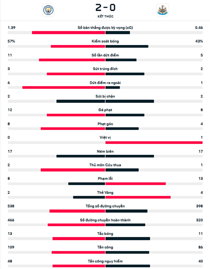 Những phút sau đó, Man City chủ động chơi chậm để giữ sức và giữ chân. Chính vì thế, Newcastle dù rất cố gắng nhưng cũng không thể có được bàn thắng.