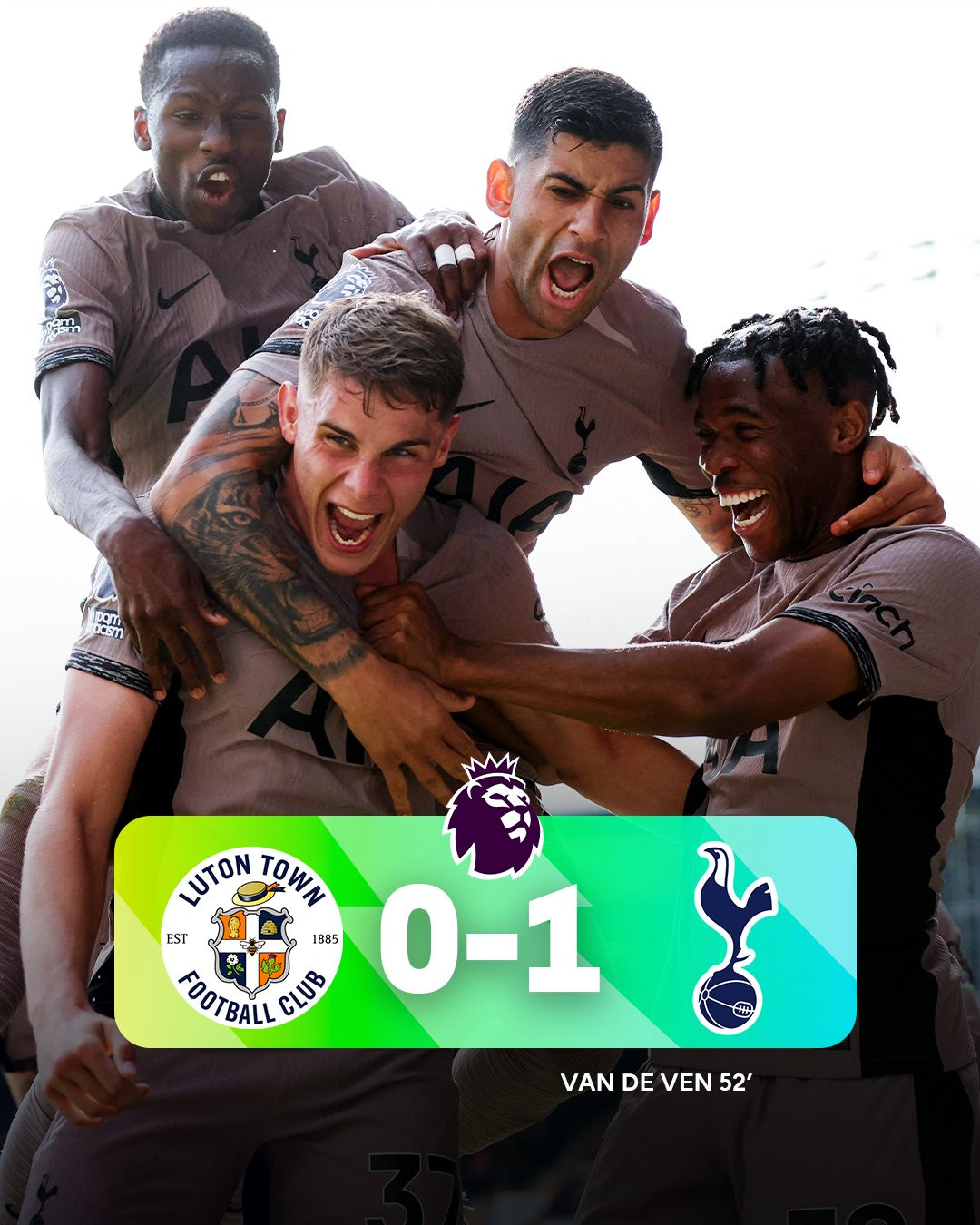 Chơi thiếu người từ cuối hiệp 1 nhưng Tottenham vẫn xuất sắc đánh bại Luton 1-0 nhờ pha lập công duy nhất của trung vệ Van de Ven.