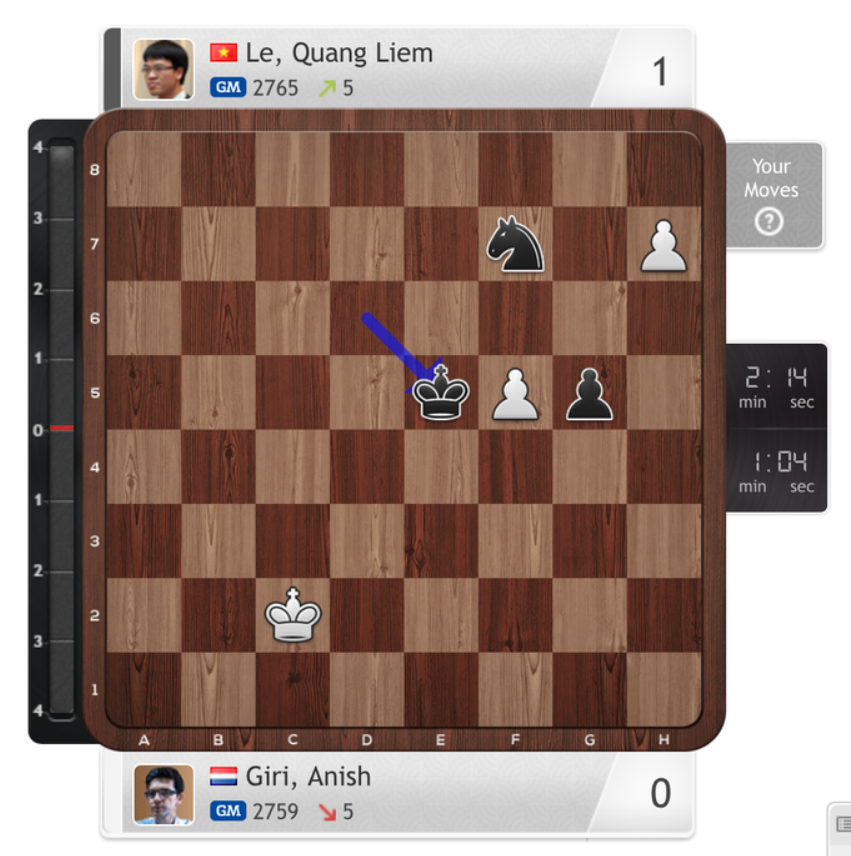Sau trận ra quân thất bại trước kỳ thủ số 8 thế giới Shakhriyar Mamedyarov, Lê Quang Liêm đã xuất sắc đánh bại "vua cờ" Magnus Carlsen lần đầu tiên trong sự nghiệp của mình với tỉ số 2,5-1,5. Chỉ tiếc là trong tâm trạng hưng phấn sau chiến tích lịch sử, Quang Liêm lại bất ngờ thúc thủ trước kỳ thủ 16 tuổi người Ấn Độ Praggnanandhaa R với tỉ số 0,5-2,5!