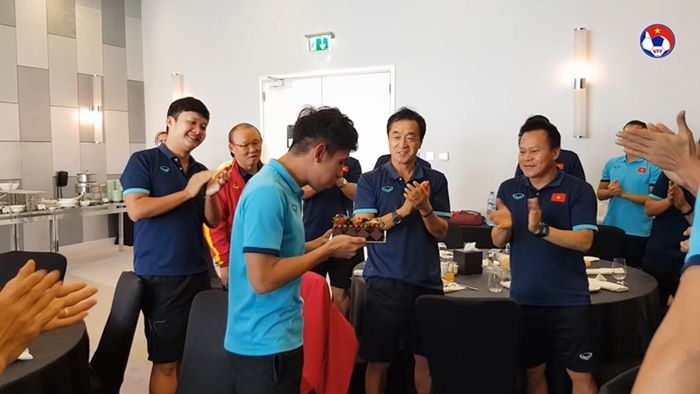 13/6 là ngày sinh nhật của tiền vệ Hồng Duy. Trong ngày tròn 25 tuổi, tiền vệ quê Bình Phước đã được các thành viên của đội tuyển việt Nam tổ chức bữa tiệc sinh nhật đơn giản tại Dubai (UAE).