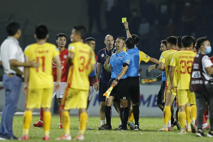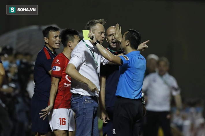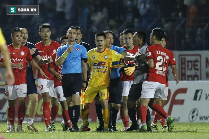Nhiều cầu thủ và thành viên ban huấn luyện CLB TP.HCM không còn giữ được bình tĩnh sau khi CLB Thanh Hóa có được bàn gỡ hòa ở phút 90+6.
