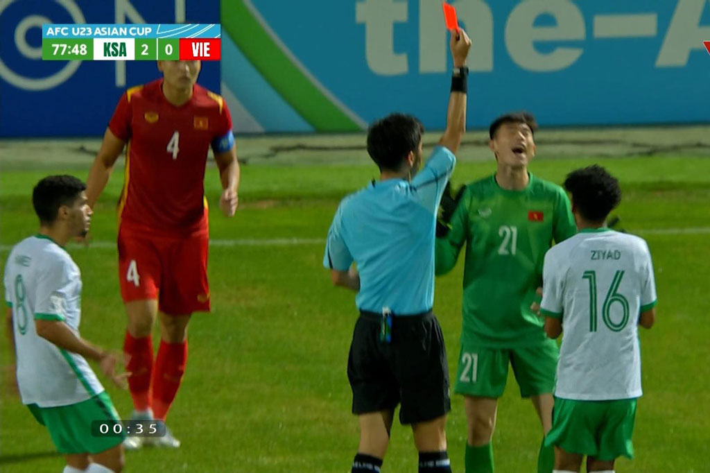 Phút 78 trận tứ kết U23 châu Á giữa Việt Nam và Saudi Arabia, Trong nỗ lực ngăn cản Firas Al Buraikan thoát xuống ghi bàn, Quan Văn Chuẩn đã băng ra rất xa khung thành để xoạc bóng. Thủ môn của U23 Việt Nam phá bóng ra xa, nhưng đồng thời cũng đốn ngã tiền đạo đối phương.