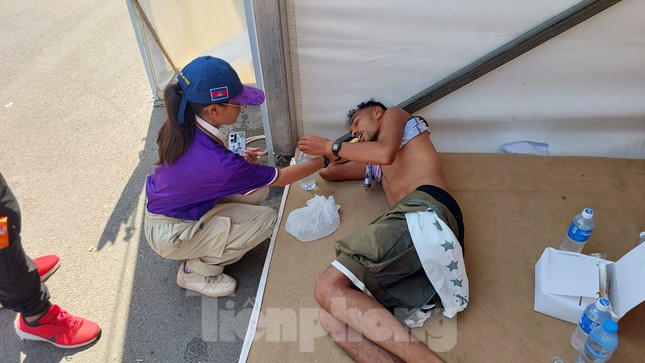 Sáng 6/5, thời tiết Siem Reap hơn 40 độ C khiến nội dung marathon vốn đã nhiều thách thức càng thêm khắc nghiệt. Nhiều VĐV quyết định bỏ cuộc và nhiều người đã ngất vì sốc nhiệt. Không chỉ các VĐV, ngay cả những Tình nguyện viên SEA Games 32 cũng cần đến chăm sóc y tế.