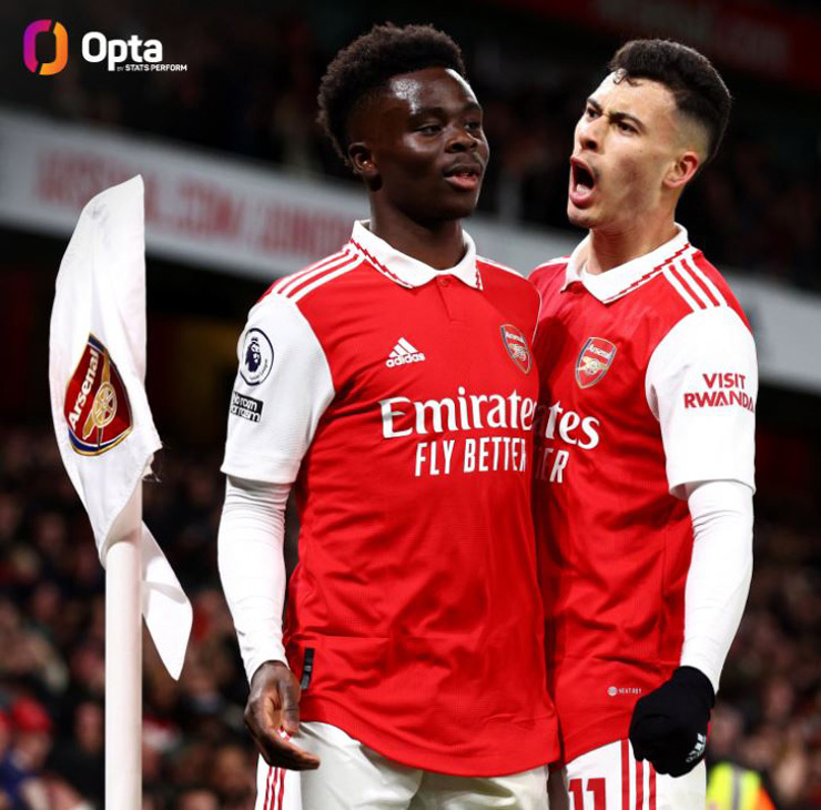 Trong khi đó, theo thống kê của trang OptaJoe, Bukayo Saka (23) và Gabriel Martinelli (20) là cặp đồng đội thứ hai ở lứa tuổi U21 tuổi lập kỷ lục cùng có từ 20 lần trở lên tham gia ghi bàn hoặc kiến tạo trong một mùa giải Ngoại hạng Anh, sau Cristiano Ronaldo và Wayne Rooney của MU ở mùa giải 2006/07.