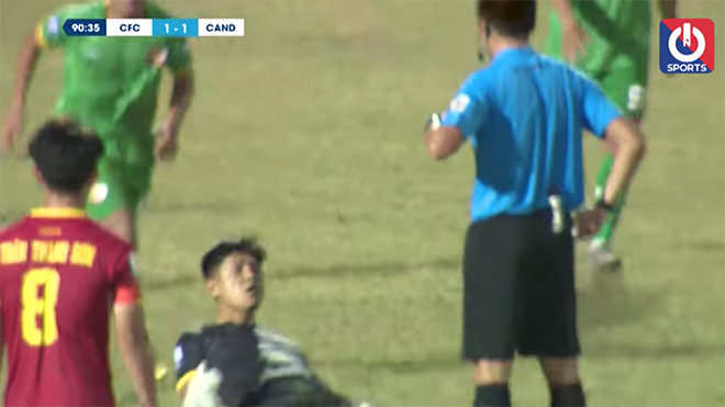 Thủ thành của Cần Thơ đã chạy thẳng tới chỗ trọng tài chính và có nhiều động tác thách thức, sau đó là màn trượt cỏ ăn mừng ngay trước mặt trọng tài.