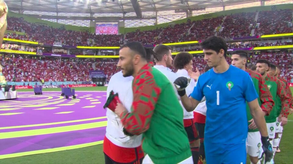 Thủ môn Yassine Bounou của Ma Rốc bất ngờ ‘biến mất’ trước khi tiếng còi khai cuộc trận thắng sốc Bỉ 2-0 ở lượt trận thứ 2 bảng F World Cup 2022 diễn ra tối 27/11, dù đã ra sân hát quốc ca.