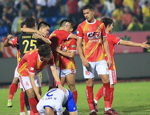Lúc này thủ môn Trịnh Xuân Hoàng của Thanh Hóa cùng một số cầu thủ khác thắc mắc tại sao là thành viên đội bóng nhưng không được về khu vực cabin của đội thì một số người ra ngăn cản.