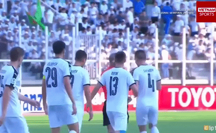 Cú "tung cước" của cầu thủ áo vàng tìm đến đúng trái bóng và diễn ra ngay trước khi đối phương kịp vung chân dứt điểm. Tuy nhiên, cầu thủ của Altyn Asyr lại tỏ ra khá đau đớn sau tình huống này khi ôm chân đổ gục xuống sân.