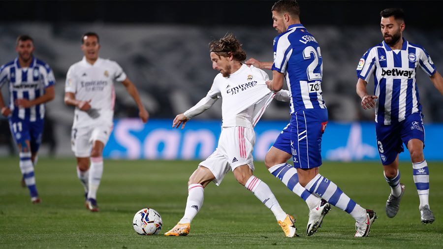 Dính bàn thua từ sớm, nhà ĐKVĐ La Liga miệt mài tấn công và dù có khó khăn thì họ vẫn tạo ra được không ít cơ hội ghi bàn nhưng lại không một lần chuyển hóa thành bàn thắng. Chẳng hạn phút 39, sau khi đồng đội đoạt bóng ngay gần vùng cấm địa Alaves, Toni Kroos có đến 2 pha dứt điểm liên tiếp trong khu vực 16m50 nhưng đều không đánh bại được thủ môn Pacheco.
