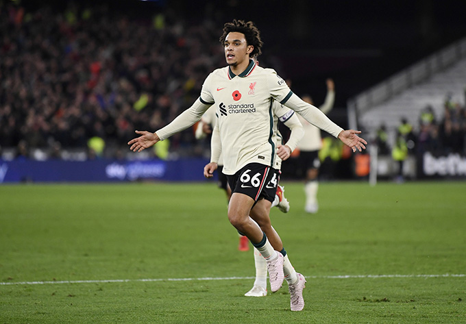 Không thể xuyên phá hàng thủ West Ham từ những tình huống bóng sống, Liverpool tìm kiếm cơ hội từ những tình huống cố định. Phút 41, Salah bị phạm lỗi ngay trước vòng cấm và chính ngôi sao người Ai Cập đã có pha phối hợp rất tốt để hậu vệ Alexander-Arnold vẽ nên đường cong hoàn hảo đánh lừa thủ thành Fabianski để san bằng cách biệt.