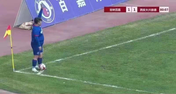 Bức ảnh được đăng tải thực chất được chụp vào năm 2019. Khi đó, CLB hạng 3 Jilin Baijia đã tung vào sân một cầu thủ "ngoại cỡ" để phản đối việc nợ lương của đội bóng. Người đàn ông này là Xu Guangnan, một cổ đông của CLB Jilin Baijia.