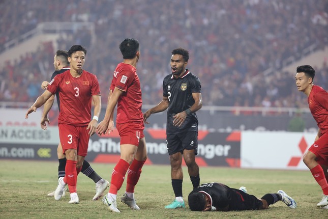 Ở pha bóng này, cầu thủ Indonesia ôm mặt đau đớn, ra dấu bị Tiến Dũng cùi chỏ. Ngoài sân, HLV Shin Tae-yong và các cộng sự phản ứng dữ dội, đòi trọng tài phải nặng tay hơn.