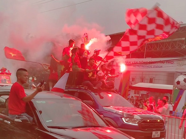 Nhiệt độ ở Phú Thọ khoảng 29 độ C, độ ẩm 69%, phù hợp cho trận đấu. Cả bốn trận của Việt Nam ở vòng bảng đều mưa, và người hâm mộ sẽ kỳ vọng điều tương tự không xảy ra. Các CĐV đang mở hội, đổ về sân Việt Trì, Phú Thọ.