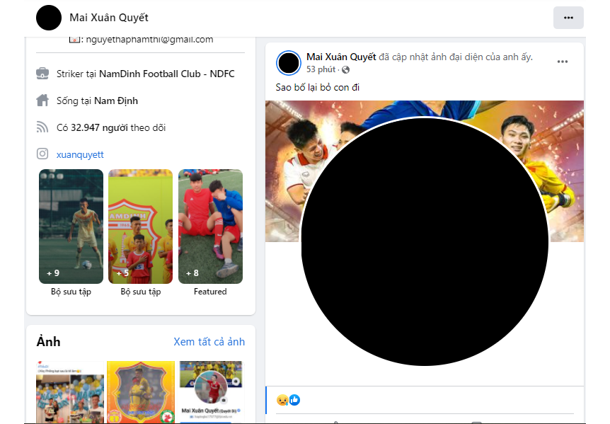 Khi chấn thương chưa bình phục hoàn toàn, thì cầu thủ 23 tuổi đón tin dữ khi người cha của mình qua đời. Sáng 12/5, Xuân Quyết chia sẻ hình ảnh cùng dòng mô tả "Sao bố lại bỏ con đi", trên Facebook cá nhân.