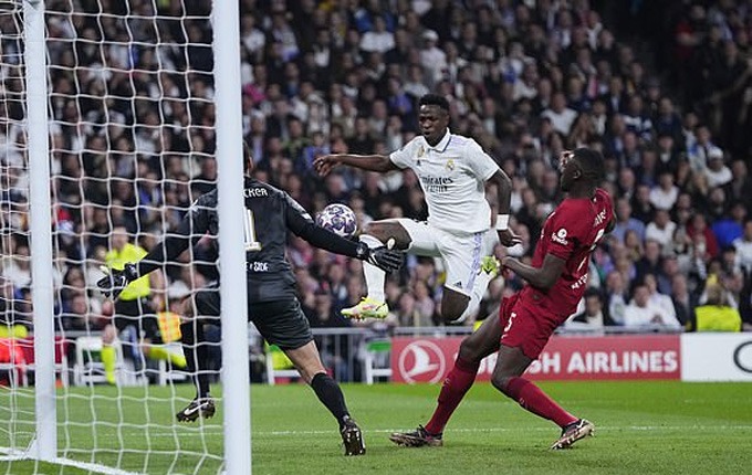 Real Madrid là những người tạo ra được các cơ hội nguy hiểm trong khoảng thời gian giữa hiệp thi đấu đầu tiên. Phút 14, cánh tay vung ra khi khép góc của Alisson đã giúp anh cản phá được cú dứt điểm cận thành của Vinicius. Và cũng chính những đầu ngón tay của Alisson đã làm lệch quỹ đạo cú nã rocket từ khoảng cách 30m của Camavinga khiến trái bóng tìm đúng xà ngang ở phút 20.