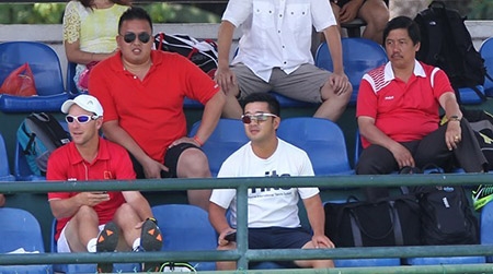 Hoàng Longy (ngồi trên đeo kính đen) trên khán đài tại Davis Cup ở Malaysia - Ảnh: Bạch Dương |