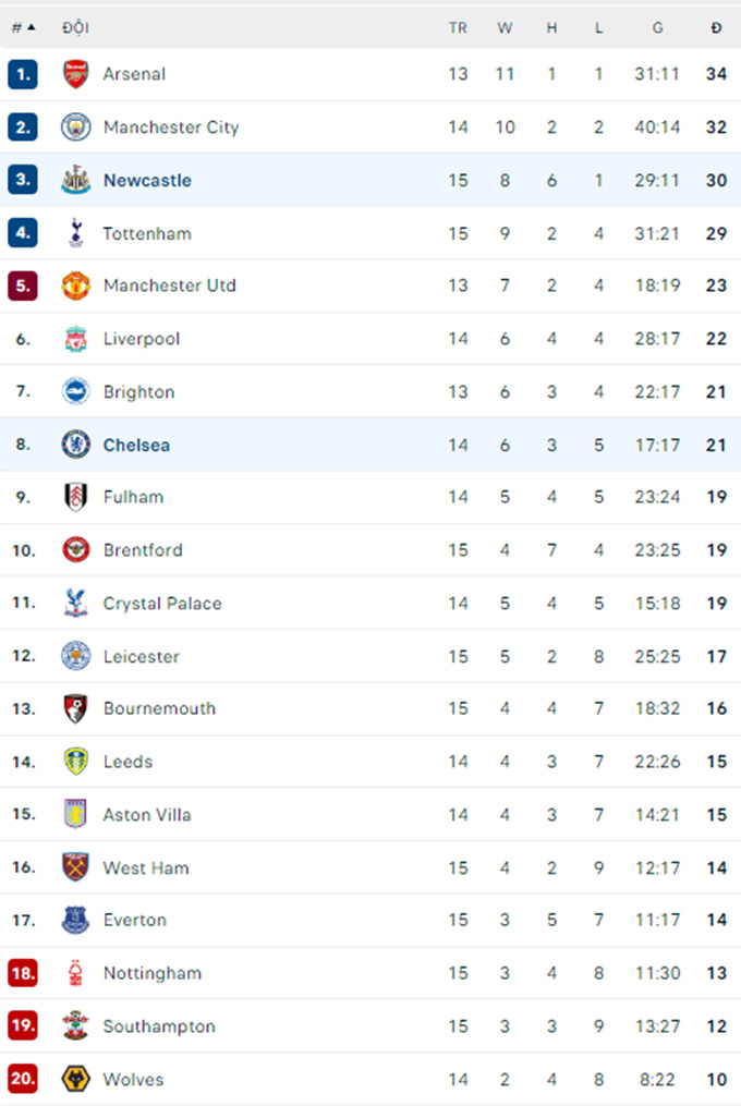 Ở những trận đấu cùng giờ khác, Bournemouth tận dụng tối đa lợi thế sân nhà để thắng Everton 3-0. Nottingham Forest thắng Palace 1-0. Leicester gây bất ngờ lớn khi đánh bại chủ nhà West Ham 2-0.
