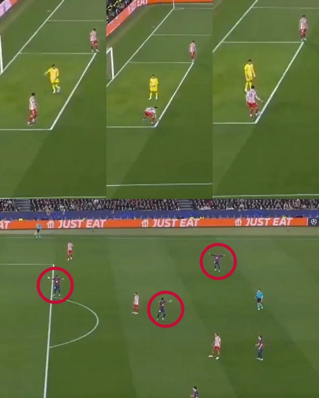 Một tình huống đáng chú ý khác là pha phạm lỗi của Cubarsi với Giuliano Simeone khi tiền đạo Atletico có cơ hội đối mặt thủ môn. Ban đầu, trọng tài chỉ rút thẻ vàng, nhưng sau khi xem lại VAR, quyết định đã được nâng lên thành thẻ đỏ. Theo Iturralde Gonzalez, đây là phán quyết chính xác bởi hậu vệ Barcelona đã tác động từ phía sau, ngăn cản cơ hội ghi bàn rõ rệt của đối phương.