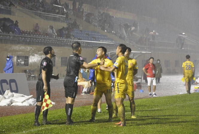 Tình huống gây tranh cãi xảy ra ở phút 75, khi đội chủ nhà đang dẫn trước 1-0. Trong một tình huống tấn công, Rafaelson bên phía Nam Định đã đưa bóng vào lưới Quảng Nam nhưng trợ lý Đức Tuấn đã căng cờ báo việt vị.