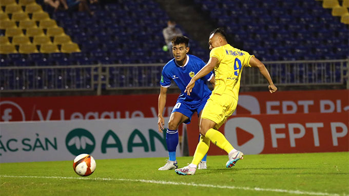 Đội bóng xứ Quảng đã có bàn gỡ ngay trước khi hiệp 1 kết thúc. Để rồi sang hiệp 2, họ cầm hòa rồi kéo chủ nhà đến chấm luân lưu cân não. Ngọc Hải đã sút hỏng trái đầu tiên. Đến lượt đá thứ 3, Trọng Hoàng tiếp tục nối gót với một cú sút bay lên trời. Hai cầu thủ đầy kinh nghiệm trận mạc, và được xem là bản lĩnh nhất của SLNA đã không thắng được chính mình. Điều đó cũng gián tiếp “đá bay” luôn tấm vé đi tiếp của SLNA.