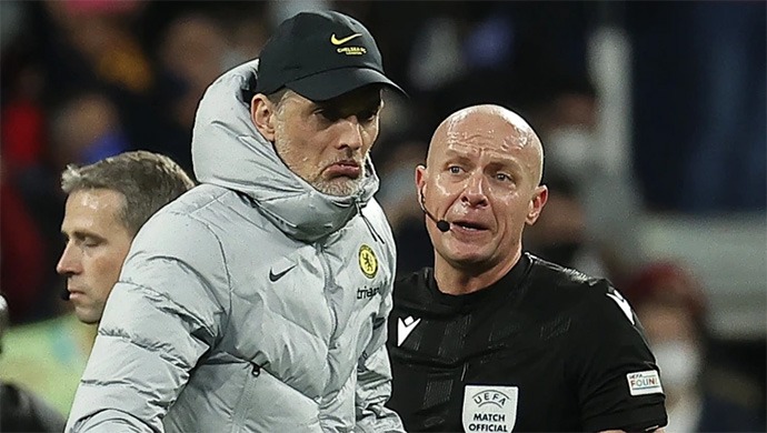 Sau trận đấu, Tuchel không hài lòng chút nào với công tác trọng tài. Đầu tiên, trọng tài chính Marciniak đã không công nhận bàn thắng của Marcos Alonso sau khi tham khảo VAR vì cho rằng hậu vệ của Chelsea để bóng chạm tay. Chưa hết, thấy cảnh vị "vua áo đen" thân mật với người đồng cấp bên kia chiến tuyến Ancelotti, Tuchel càng nóng máu: