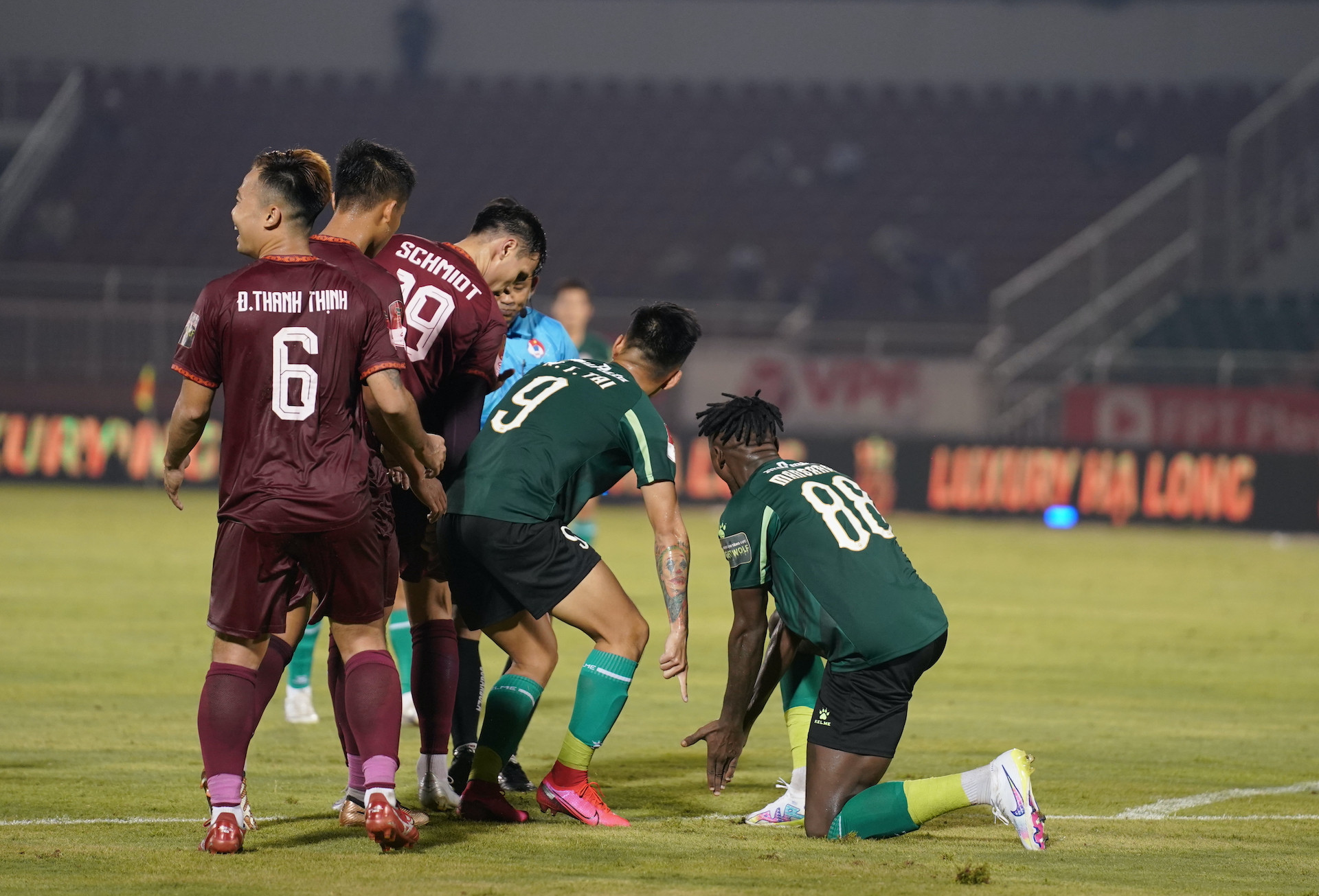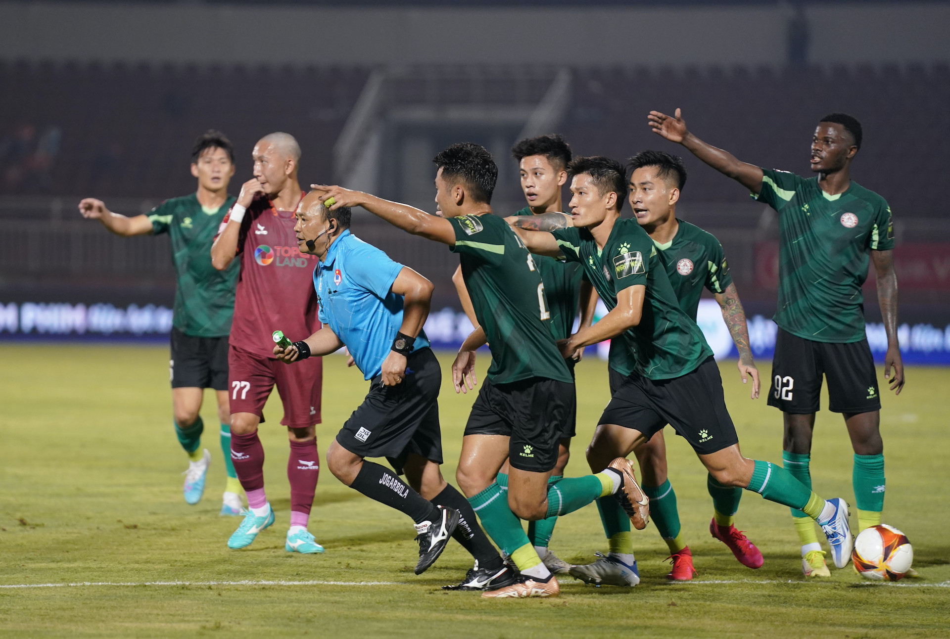 Ban đầu trọng tài Vũ Nguyên Vũ chỉ đưa ra quyết định thổi phạt trực tiếp sát vạch 16m50 và bị các cầu thủ CLB TP.HCM phản ứng quyết liệt.
