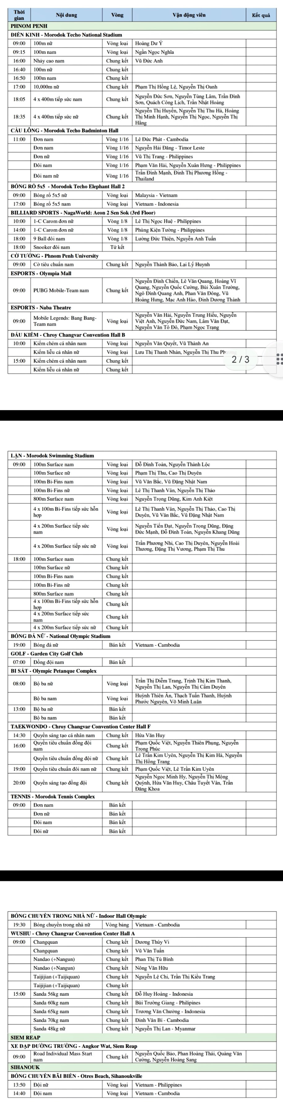 Xem trực tiếp các môn SEA Games 32 hôm nay 12/5:
