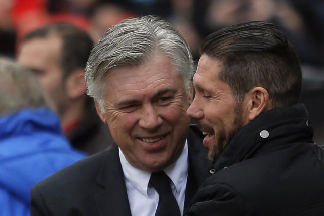 Ancelotti thắng năm, thua sáu và hòa bốn qua 15 lần đấu trí Simeone, trong đó đáng nhớ nhất là trận Real thắng Atletico 4-1 ở chung kết Champions League mùa 2013-2014, qua đó hoàn tất "cú decima" - đoạt chiếc Cup C1/Champions League lần thứ mười. Nhưng Ancelotti chưa từng hạ Atletico, khi thua ba và hòa một, qua bốn trận derby Madrid tại La Liga trong nhiệm kỳ đầu dẫn dắt Real giai đoạn 2013-2015.