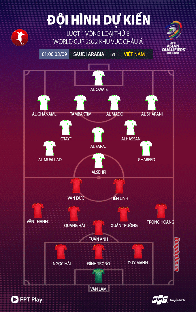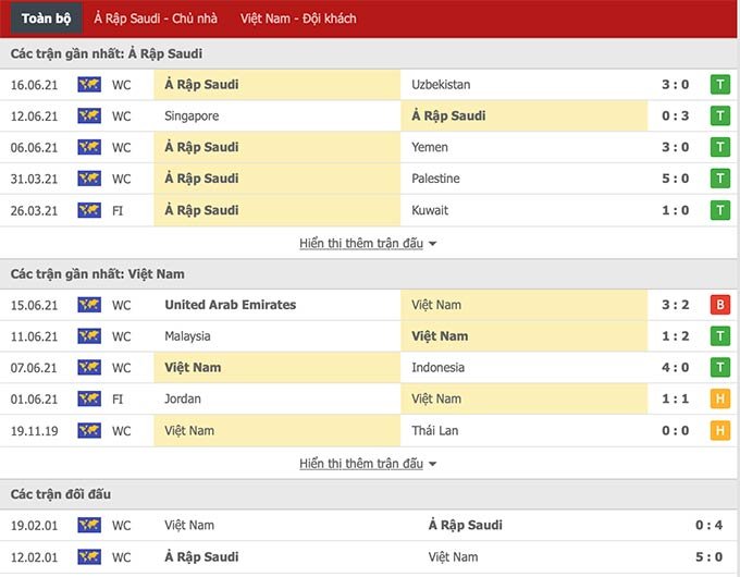 - Saudi Arabia tiến vào vòng loại thứ 3 World Cup 2022 với ngôi đầu bảng D với 20/24 điểm tối đa, ghi 22 bàn thắng và để thủng lưới 6 bàn. Trong khi đó, ĐT Việt Nam góp mặt nhờ là một trong 5 đội nhì bảng xuất sắc nhất với 17 điểm sau 8 trận đấu.