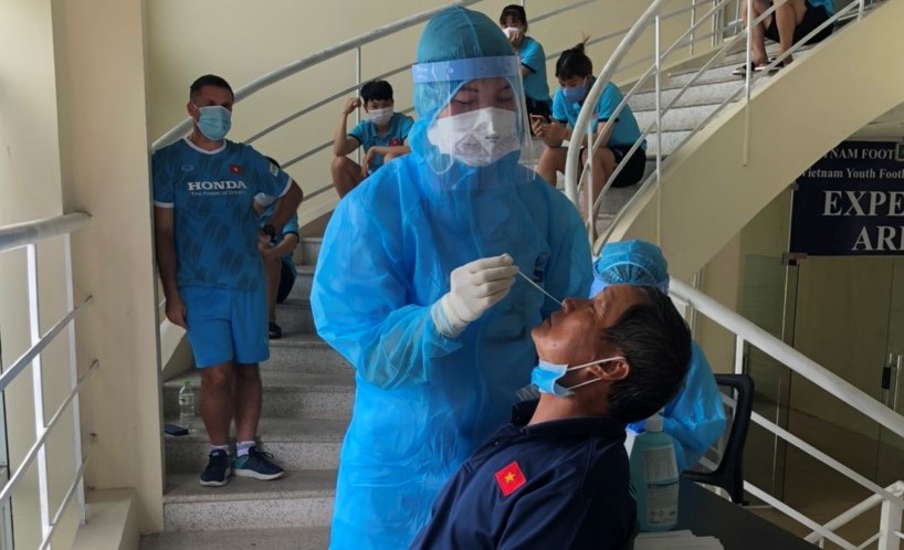Theo đó, đây là lần thứ hai trong giai đoạn tập huấn tại Trung tâm đào tạo bóng đá trẻ Việt Nam, HLV Mai Đức Chung và toàn đội được tiến hành lấy mẫu xét nghiệm. Ở lần này, nhân viên y tế tiến hành lấy mẫu xét nghiệp gộp 5 người. Kết quả xét nghiệm nhanh sẽ được thông báo tới toàn đội trong buổi chiều cùng ngày.