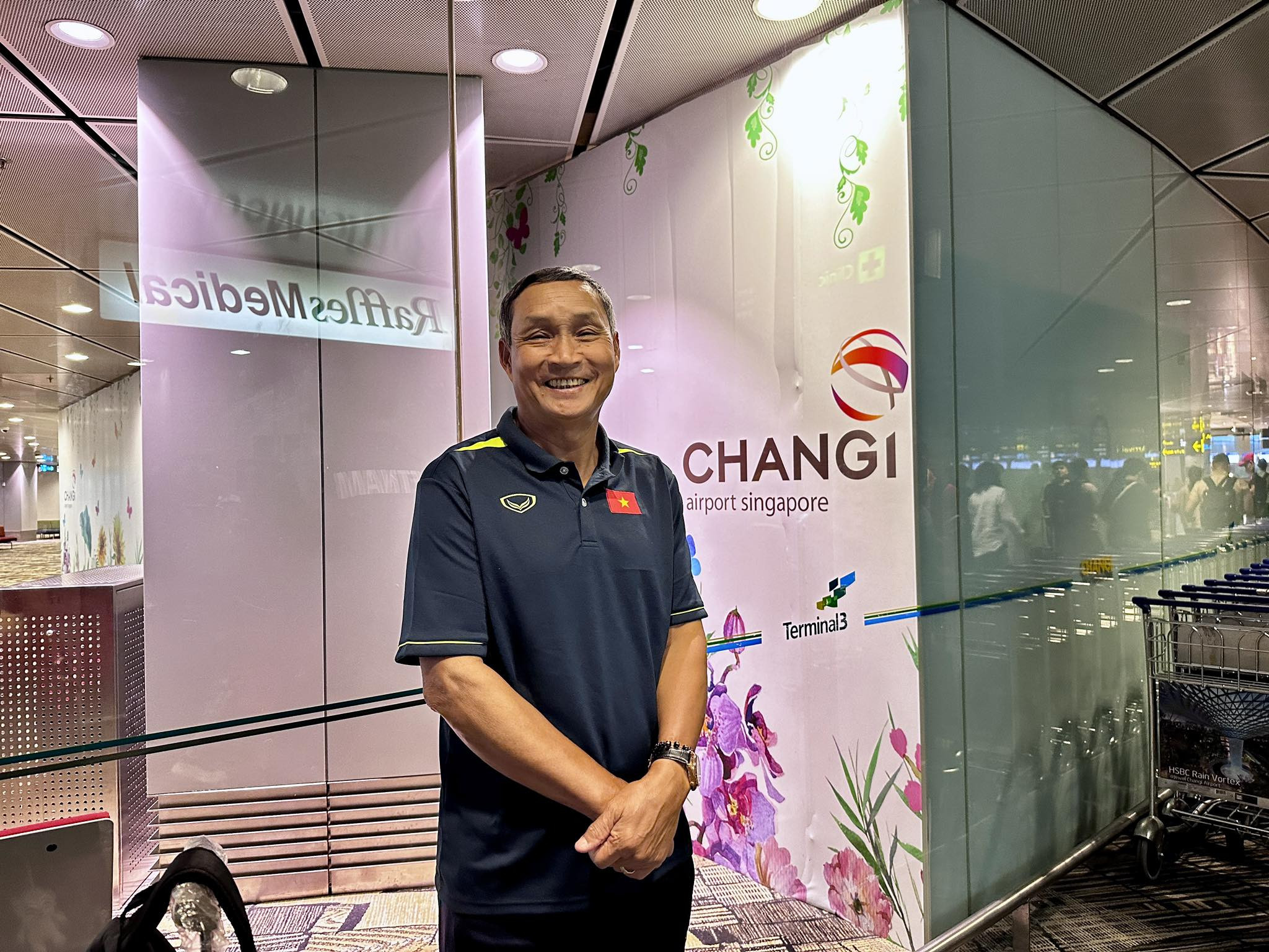 Chuyến bay chở tuyển nữ Việt Nam xuất phát từ sân bay Nội Bài (Hà Nội) lúc 12h35. Sau khoảng 4 tiếng, thầy trò HLV Mai Đức Chung có mặt tại sân bay Changi của Singapore.