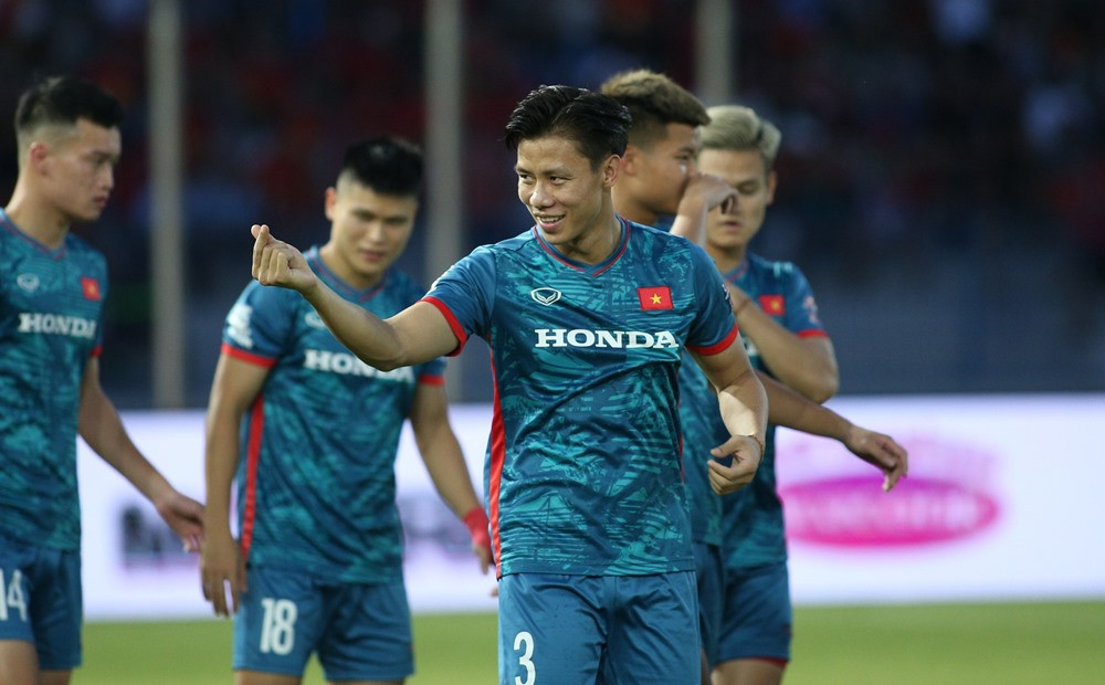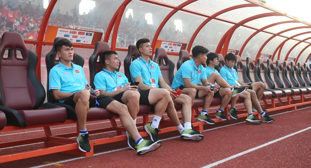 Văn Hậu bị đau ở bắp đùi phải, anh được rút ra để nhường chỗ cho tiền vệ Khuất Văn Khang.