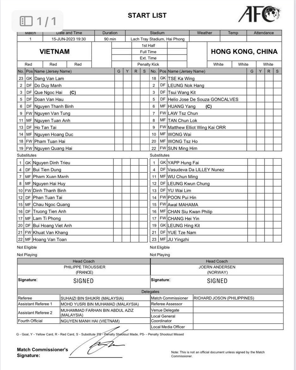 Đội hình xuất phát Việt Nam vs Hong Kong (TQ)
