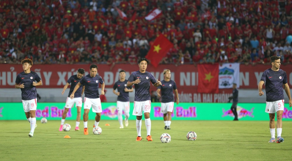 Các cầu thủ Hong Kong (TQ) khởi động trước trận