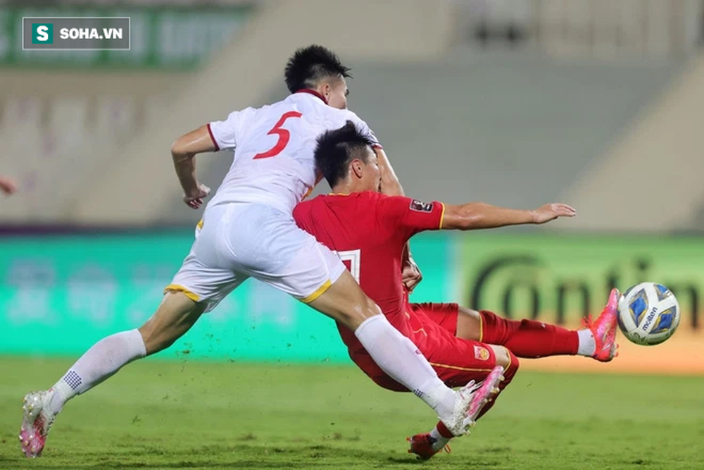 Ở bàn thua đầu tiên, lỗi đầu tiên phải nằm ở việc hàng tiền vệ của đội tuyển Việt Nam dâng lên quá cao, khiến lỗ hổng phía sau quá lớn, để rồi Bùi Tiến Dũng không đủ thời gian băng lên ngăn cản đối phương đánh đầu từ giữa sân. Rồi đến lượt Quế Ngọc Hải cũng để Zhang Yuning thoải mái mớm bóng cho Wu Lei.