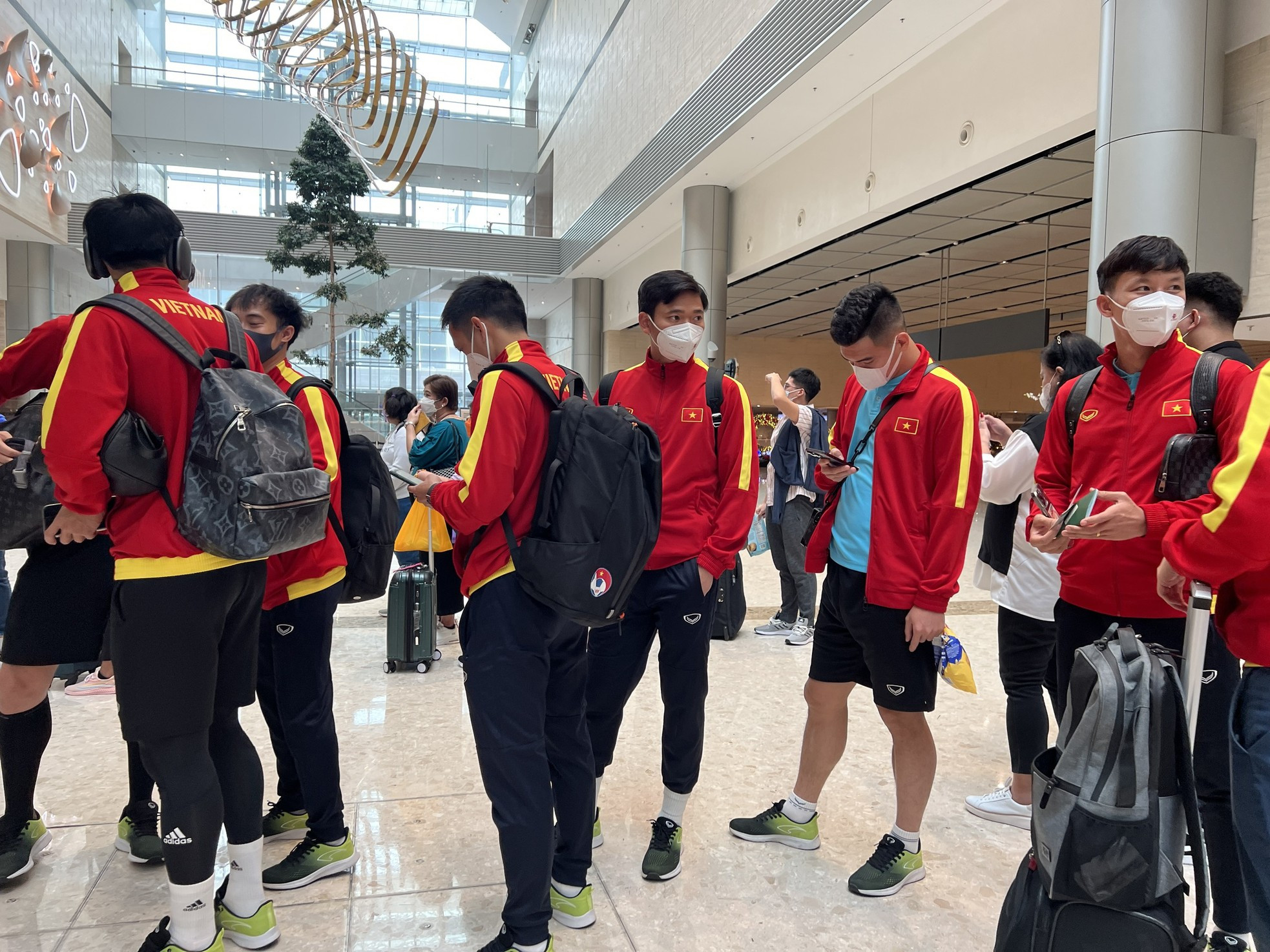 HLV Park Hang Seo và các học trò bay chuyến lúc 8h20. Vào lúc 12h (giờ địa phương), tuyển Việt Nam có mặt tại sân bay quốc tế Changi (Singapore). Toàn đội được làm thủ tục nhập cảnh nhanh chóng trước khi về khách sạn nghỉ ngơi.