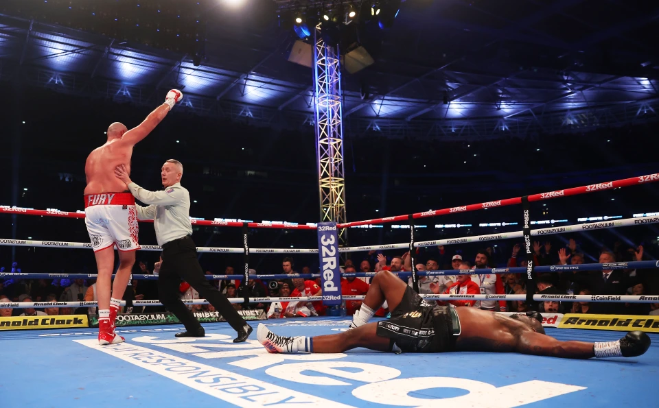 Sau hàng loạt cú jab, Fury kết thúc đối thủ bằng cú uppercut hoàn hảo, uy lực khiến Whyte ngả gục xuống sàn.