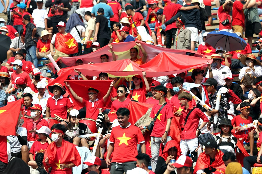 15h40': CĐV Việt Nam nhuộm đỏ sân Olympic
