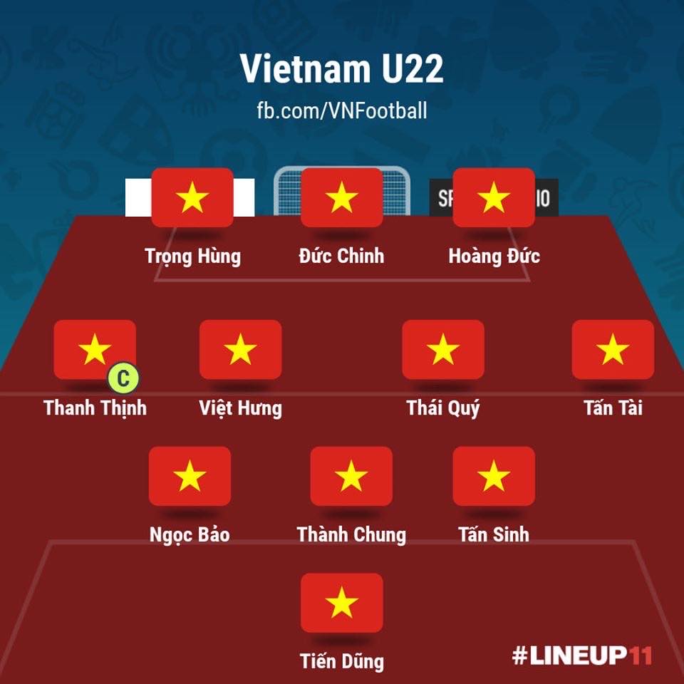 U22 Việt Nam: Tiến Dũng, Tấn Sinh (Đức Chiến, 59'), Thành Chung, Ngọc Bảo, Tấn Tài, Thanh Thịnh, Việt Hưng, Thái Quý (Trọng Hoàng, 46'), Hoàng Đức, Trọng Hùng, Đức Chinh.